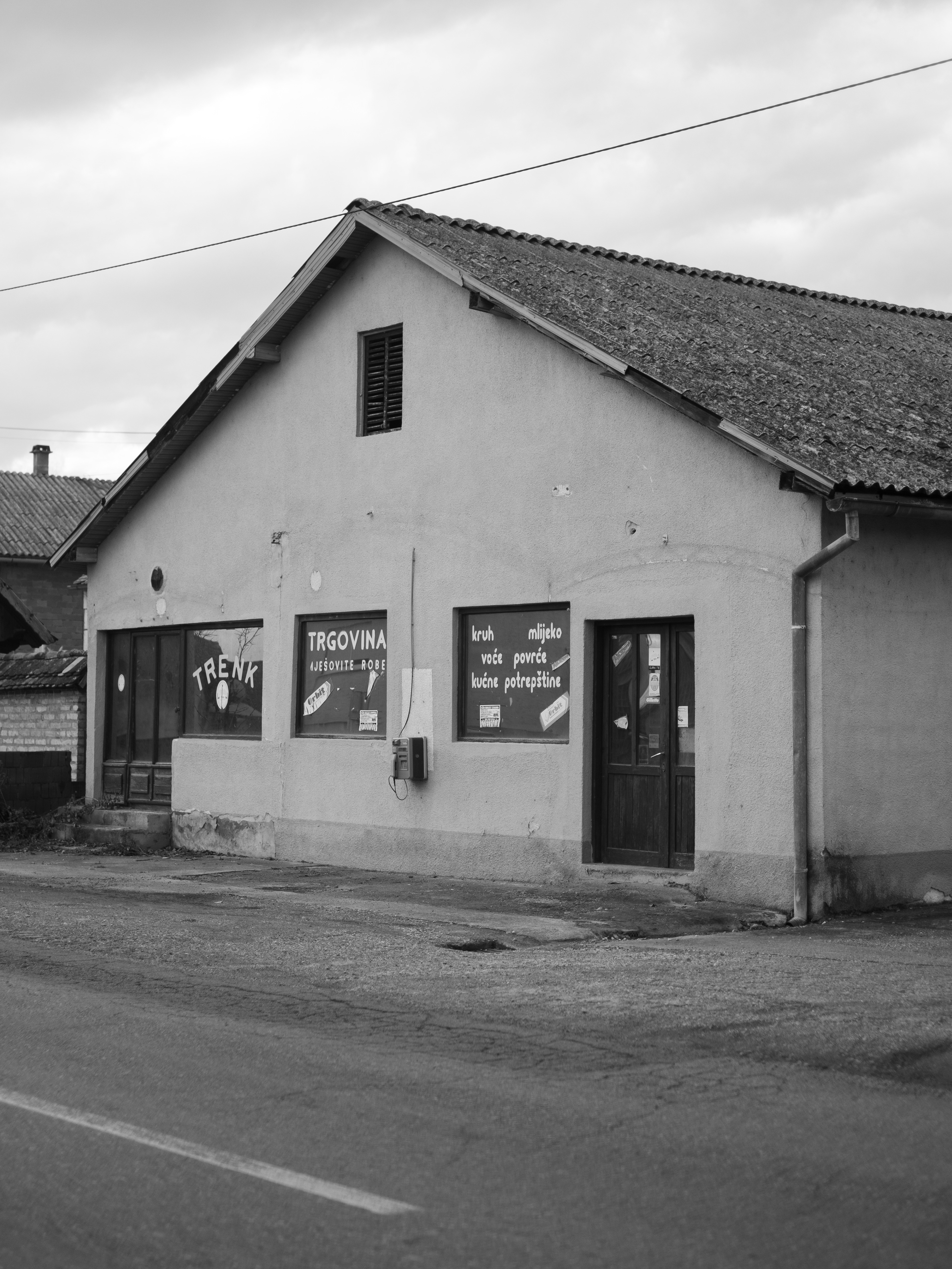 Die ehemalige Kneipe ,,Trenk'' in Podvinje. Seitdem 1998 ein kroatischer Kriegveteran 7 Gäste erschossen hat, ist sie geschlossen. Der Täter soll im Jugoslawienkrieg seine Familie verloren und mehrmals von Selbstmord und der Sinnlosigkeit des eigenen Lebens gesprochen haben